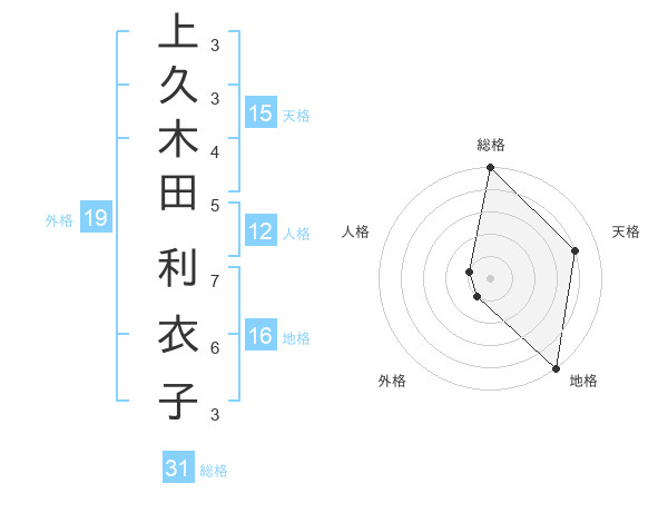 上久木田 利衣子さんの外格は19画の1点!