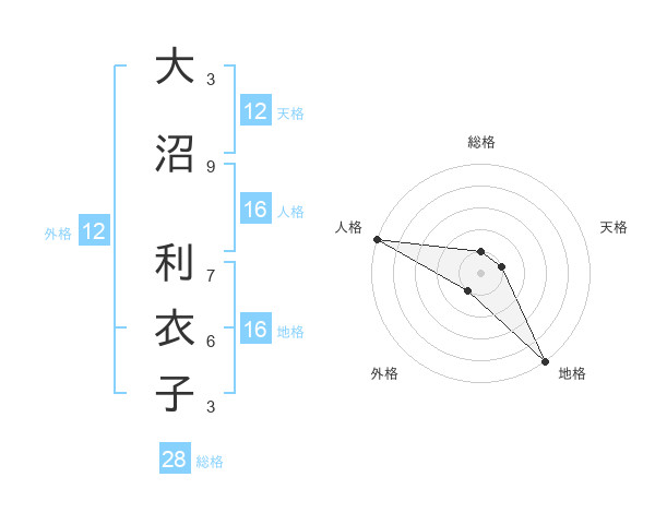 大沼 利衣子さんを姓名の画数から五運を鑑定