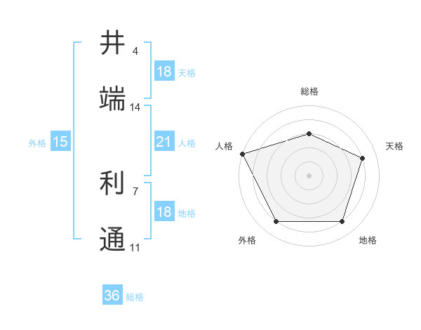 井端 利通さんの天格は18画の4点!