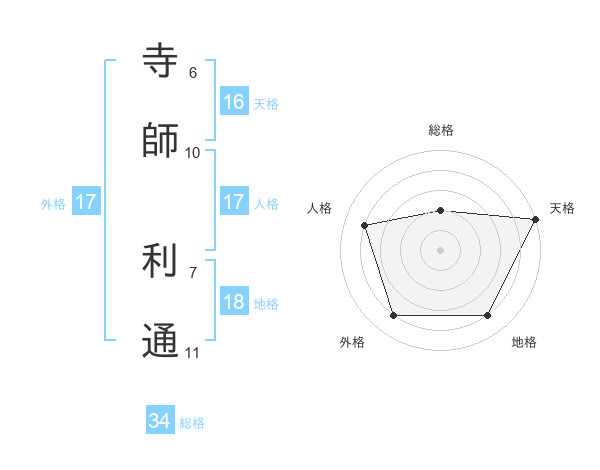 寺師 利通さんの外格は17画の4点!