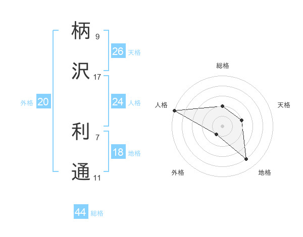 柄沢 利通さんを姓名の画数から五運を鑑定
