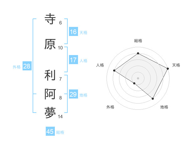 寺原 利阿夢さんを姓名の画数から五運を鑑定