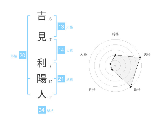吉見 利陽人さんを姓名の画数から五運を鑑定