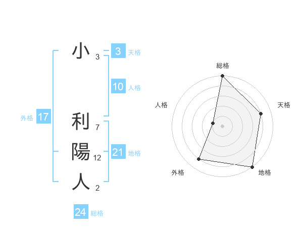 小 利陽人さんの総格は24画の5点!