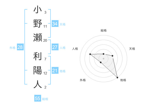小野瀬 利陽人さんを姓名の画数から五運を鑑定