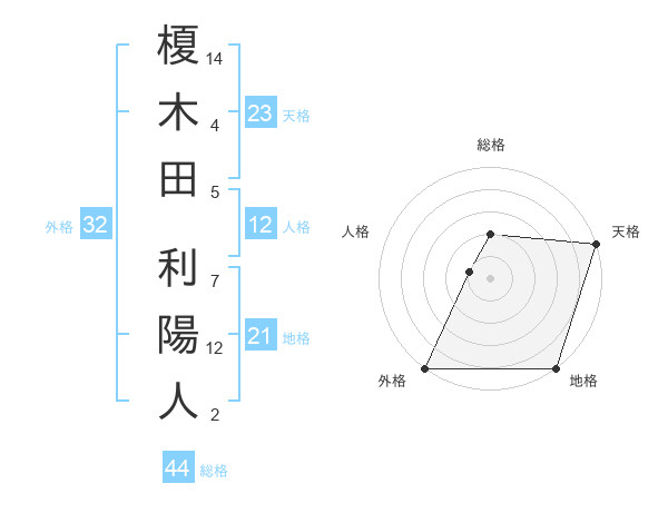 榎木田 利陽人さんを姓名の画数から五運を鑑定
