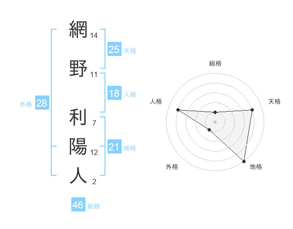 網野 利陽人さんを姓名の画数から五運を鑑定