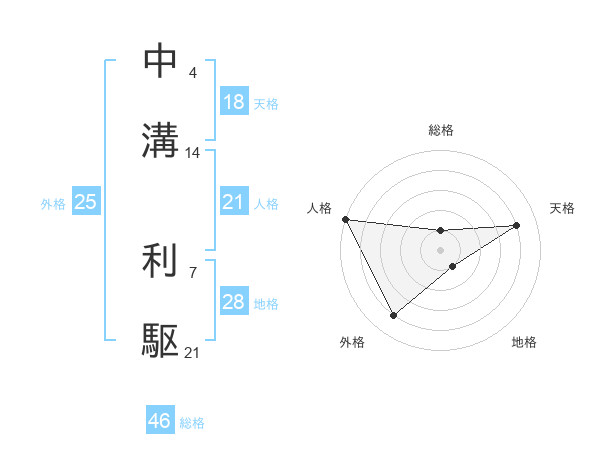中溝 利駆さんを姓名の画数から五運を鑑定