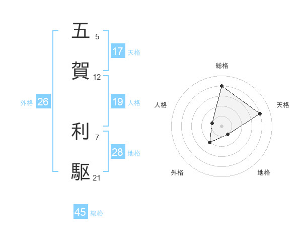 五賀 利駆さんを姓名の画数から五運を鑑定