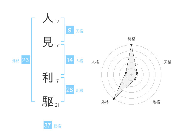 人見 利駆さんの総格は37画の5点!