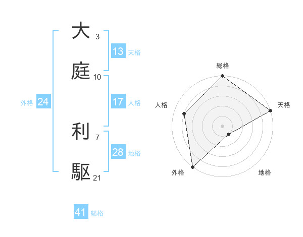 大庭 利駆さんの総格は41画の5点!
