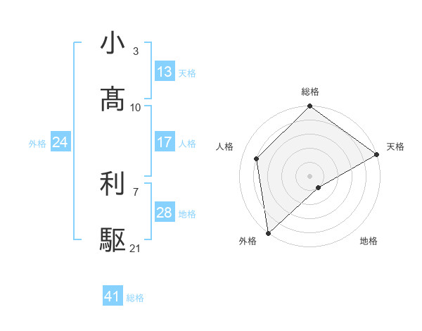 小髙 利駆さんを姓名の画数から五運を鑑定