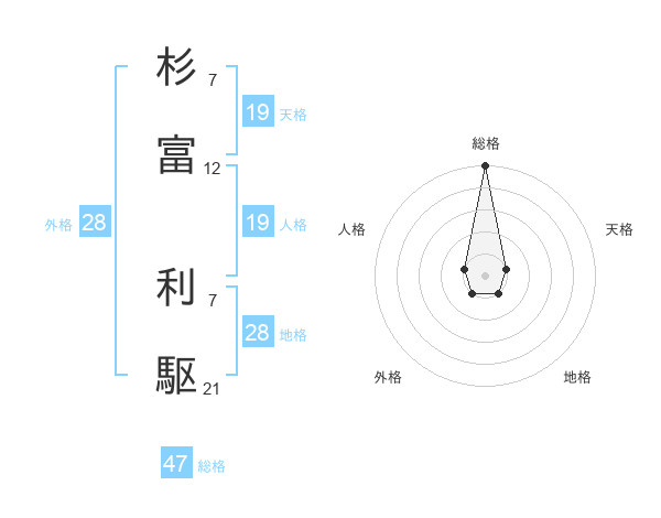 杉富 利駆さんを姓名の画数から五運を鑑定
