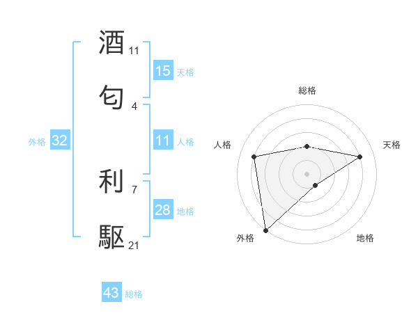 酒匂 利駆さんの天格は15画の4点!