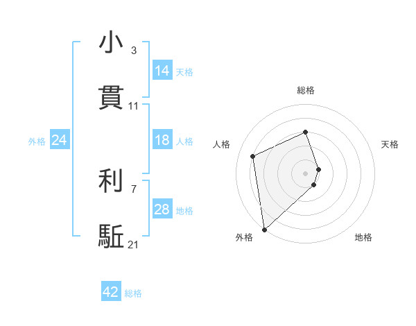 小貫 利駈さんを姓名の画数から五運を鑑定