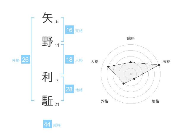 矢野 利駈さんの天格は16画の5点!