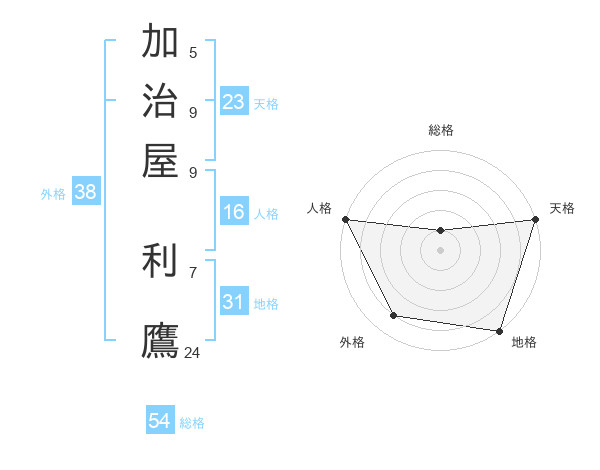 加治屋 利鷹さんを姓名の画数から五運を鑑定