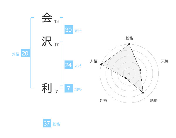 会沢 利さんの総格は37画の5点!