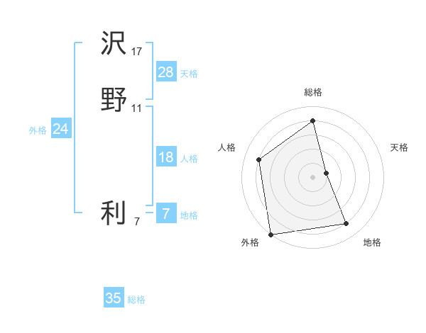 沢野 利さんの総格は35画の4点!