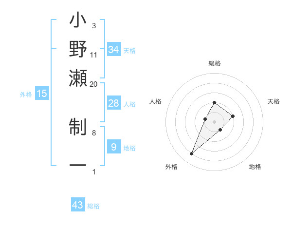 小野瀬 制一さんを姓名の画数から五運を鑑定