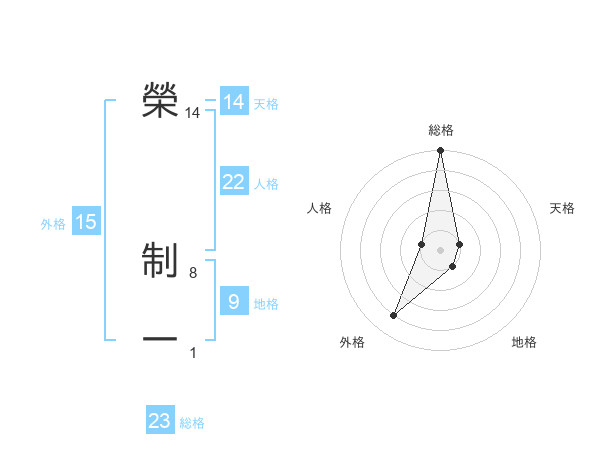 榮 制一さんの総格は23画の5点!