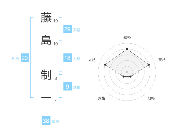 藤島 制一さんの総格は38画の4点!