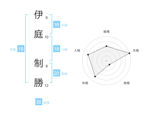 伊庭 制勝さんを姓名の画数から五運を鑑定