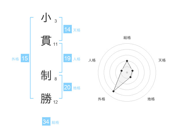 小貫 制勝さんを姓名の画数から五運を鑑定