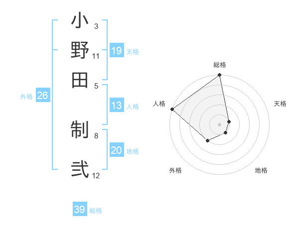 小野田 制弐さんを姓名の画数から五運を鑑定