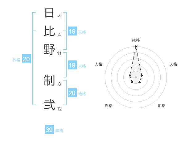 日比野 制弐さんを姓名の画数から五運を鑑定