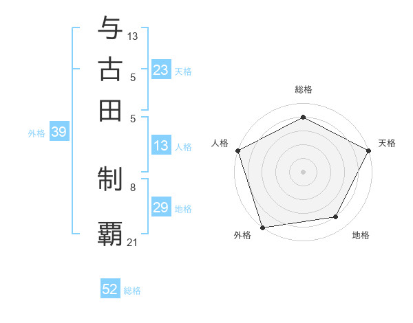 与古田 制覇さんを姓名の画数から五運を鑑定
