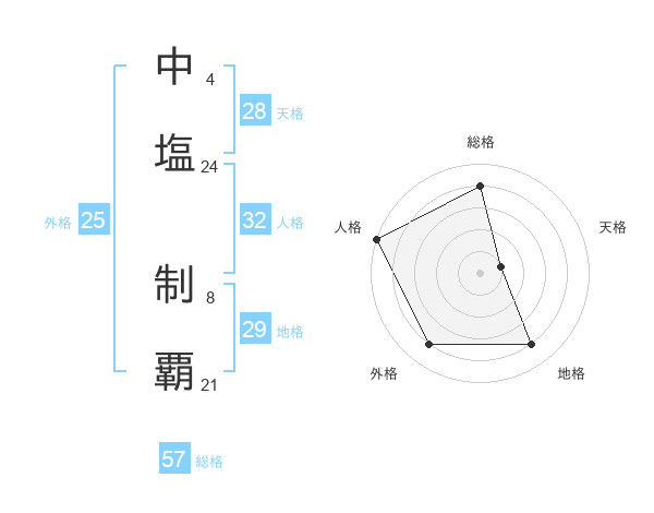 中塩 制覇さんを姓名の画数から五運を鑑定