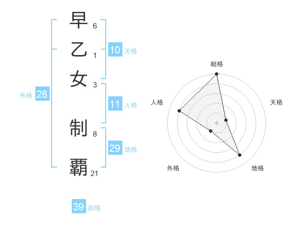 早乙女 制覇さんを姓名の画数から五運を鑑定