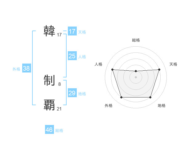 韓 制覇さんの外格は38画の4点!