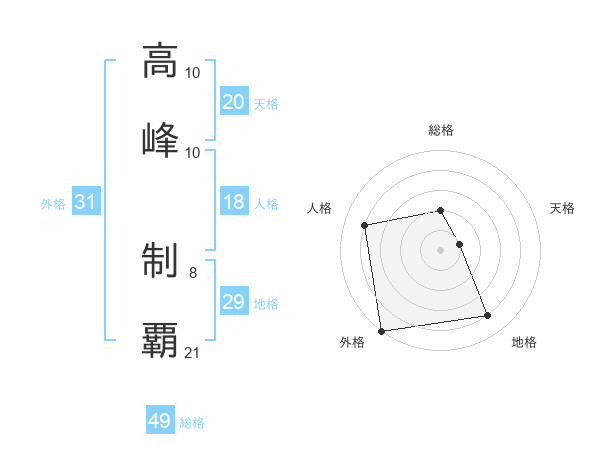 高峰 制覇さんを姓名の画数から五運を鑑定