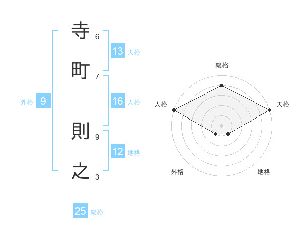 寺町 則之さんの総格は25画の4点!