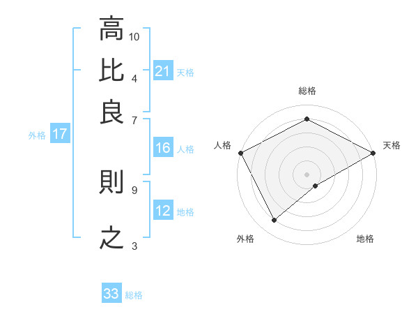 高比良 則之さんの天格は21画の5点!