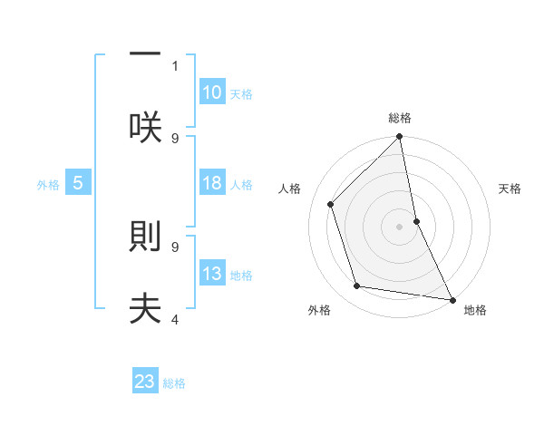一咲 則夫さんを姓名の画数から五運を鑑定