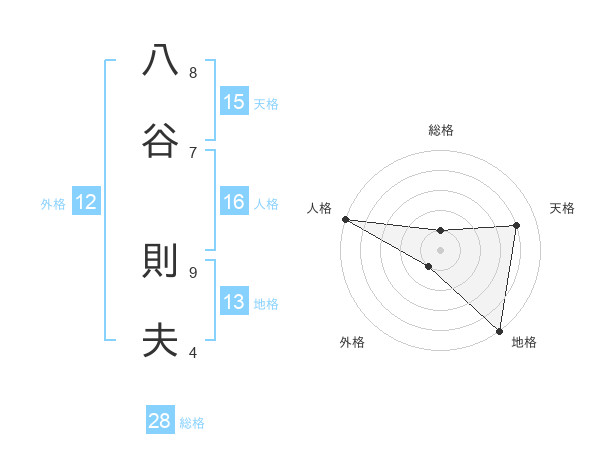 八谷 則夫さんの天格は15画の4点!