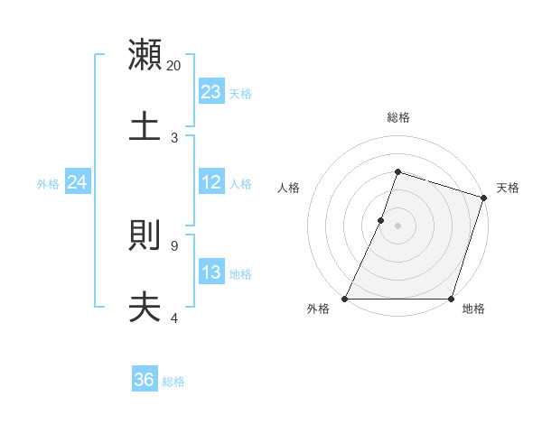 瀬土 則夫さんの天格は23画の5点!