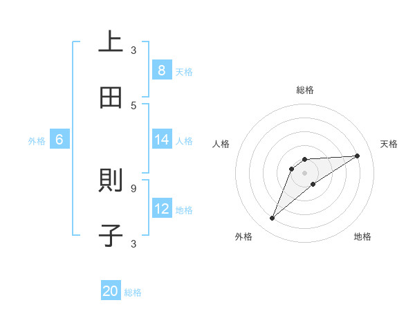 上田 則子さんの天格は8画の4点!