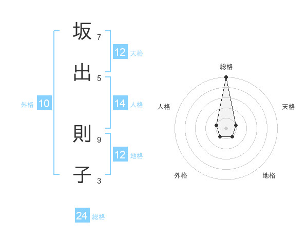 坂出 則子さんの総格は24画の5点!