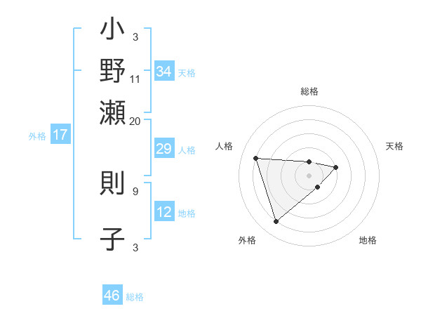 小野瀬 則子さんを姓名の画数から五運を鑑定