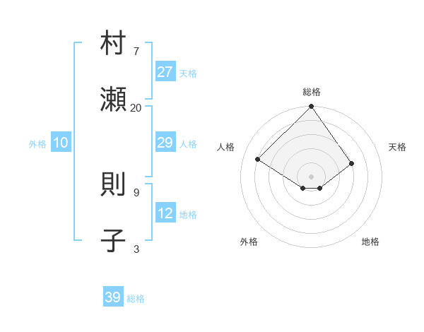 村瀬 則子さんを姓名の画数から五運を鑑定