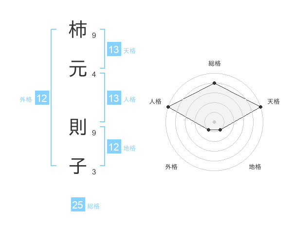 柿元 則子さんの天格は13画の5点!