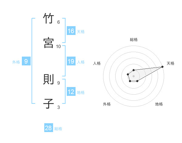 竹宮 則子さんの天格は16画の5点!