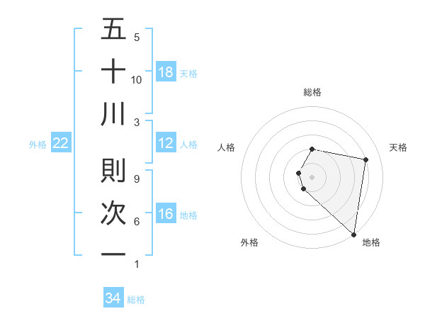 五十川 則次一さんを姓名の画数から五運を鑑定