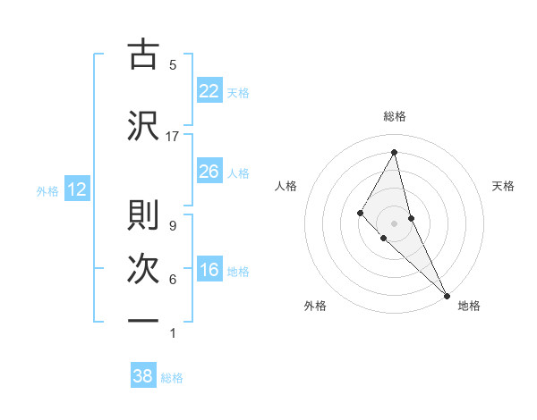 古沢 則次一さんを姓名の画数から五運を鑑定
