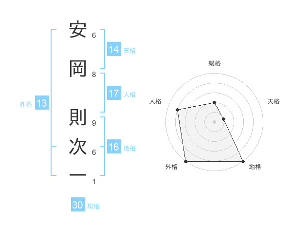安岡 則次一さんを姓名の画数から五運を鑑定