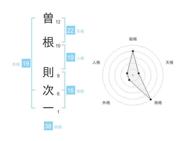 曽根 則次一さんを姓名の画数から五運を鑑定